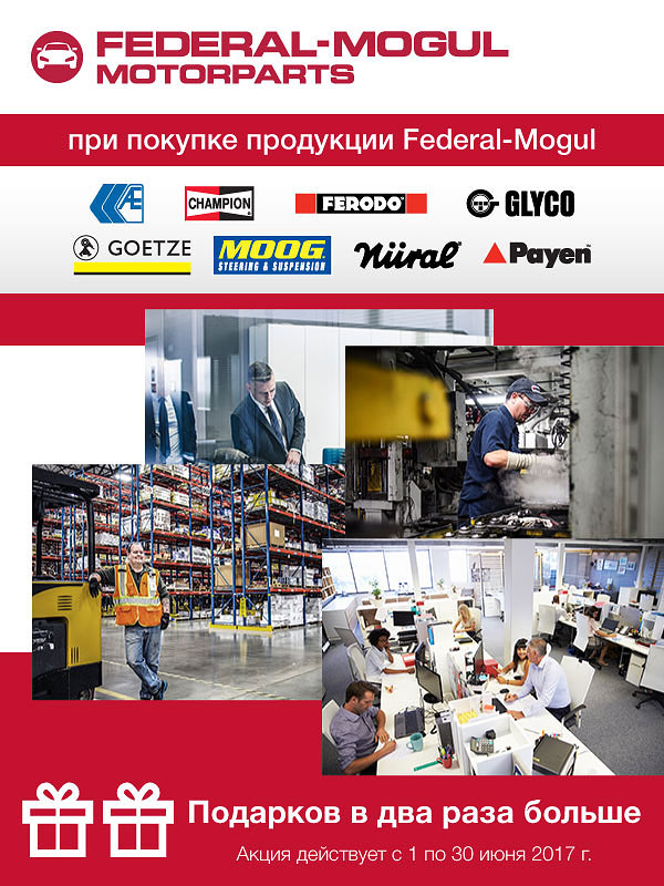 Компания «Владислав» проводит новую акцию в рамках Программы Лояльности. В период с 01 по 30 июня 2017 года клиенты получают в два раза больше юнитов при покупке всего ассортимента продукции торговых марок АЕ, Champion, Glyco, Goetze, Nüral, Payen, Ferodo и Moog. Юниты будут начислены через две недели после окончания акции.